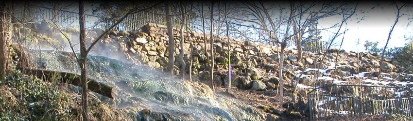 then rushes rapidly to the surface to emerge from the 47 hot springs.